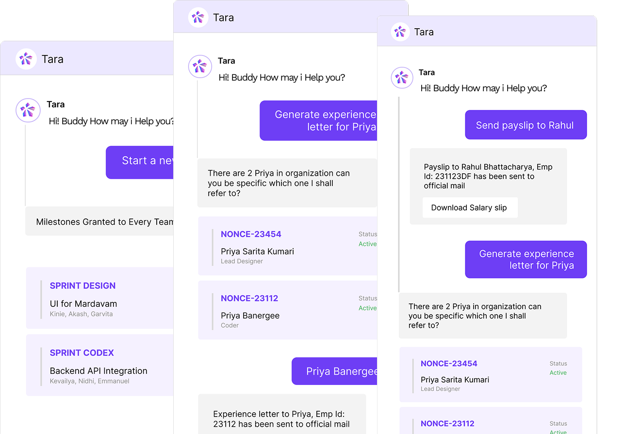 TARA empowers every role— HR, Finance, and Product Teams—with smart task management, seamless automation, and real-time insights.